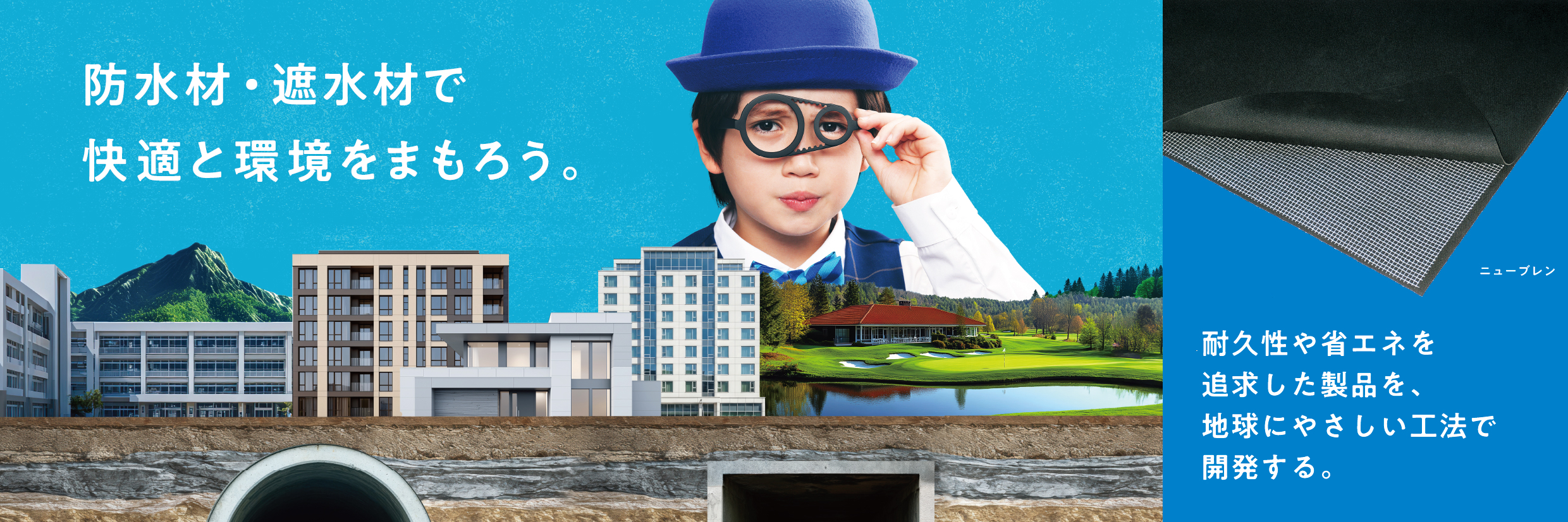 学校、集合住宅、ショッピングセンター、工場など様々な分野に防水材、遮水材、仕上げ材を提供しています。
