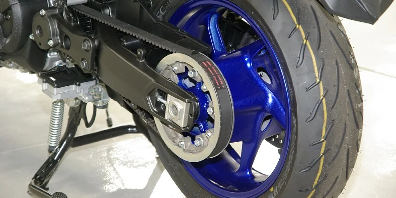 大型2輪車においては、従来後輪を駆動する部分にチェーンが用いられてきましたが、タイミングベルトは張り直しや注油などが不要で、メンテナンスの良さや静音性に利点があります。